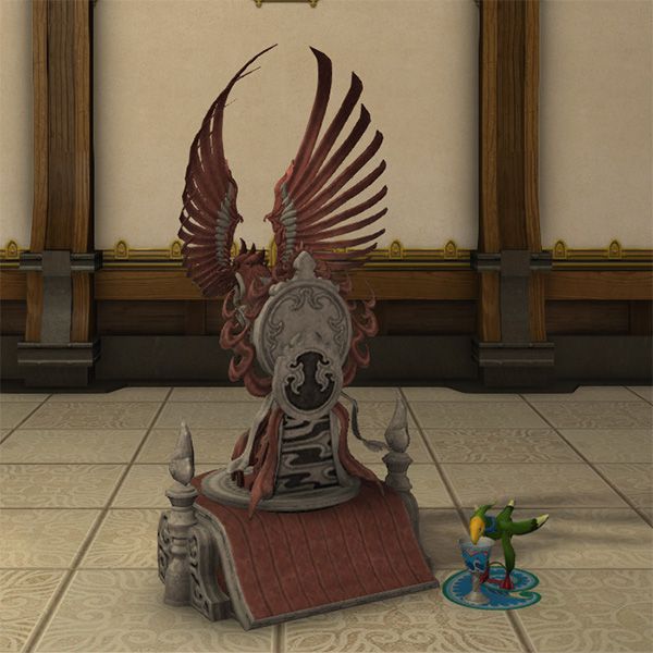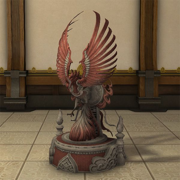 Une grande sculpture à l'image de la légendaire Suzaku.