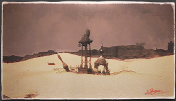 探検手帳「ビエルゴズ・ストライク」のスケッチを模写した風景画
