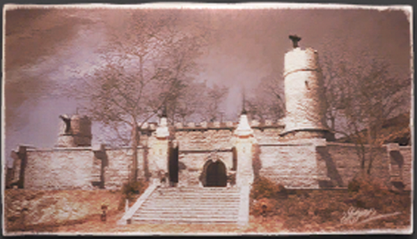 探検手帳「キャンプ・スカルバレー」のスケッチを模写した風景画