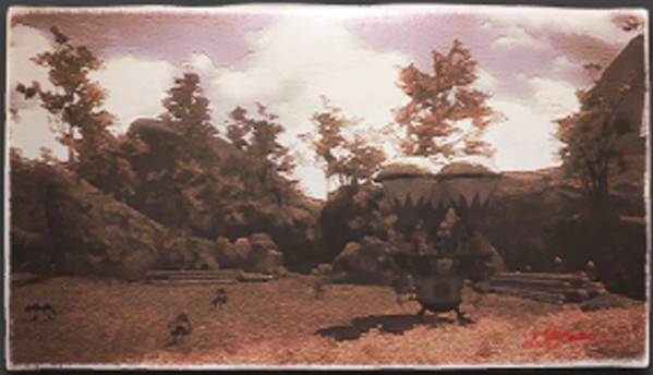 探検手帳「イクサル軍伐採所」のスケッチを模写した風景画