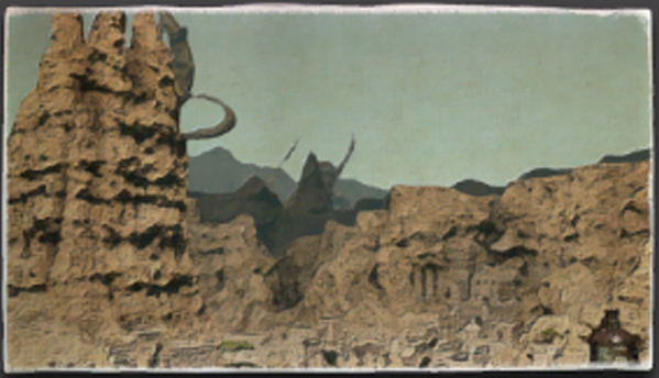 油彩画:カルン埋没寺院